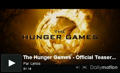 Voici le premier dévoilement de Hunger Games, le film. Écoutez bien à la fin de la séance, vous entendrez une micro séquence musicale: la signature auditive de Hunger Games. Je vous le donne en mille: Ce sera la sonnerie de téléphones de milliers de jeunes ce prochain printemps!